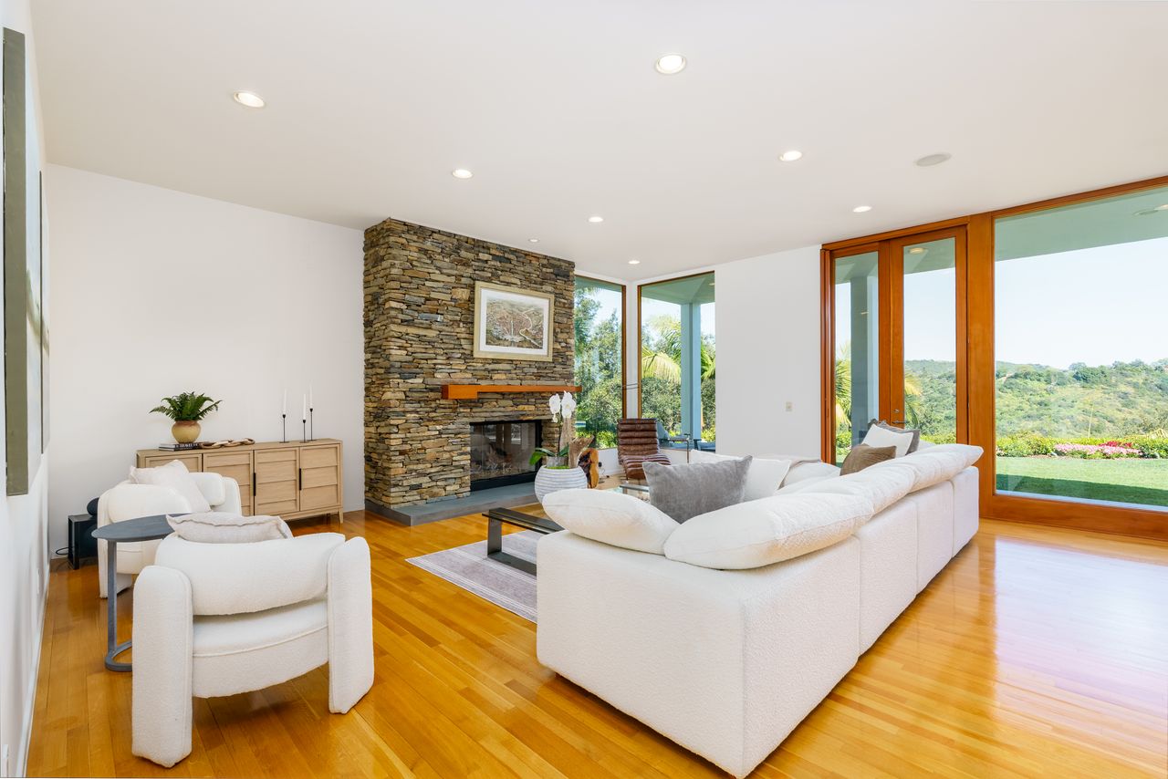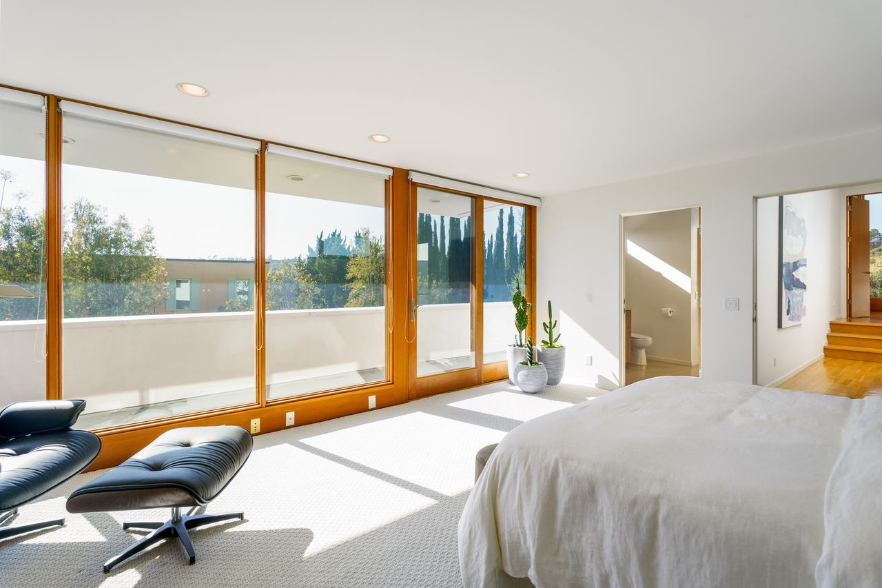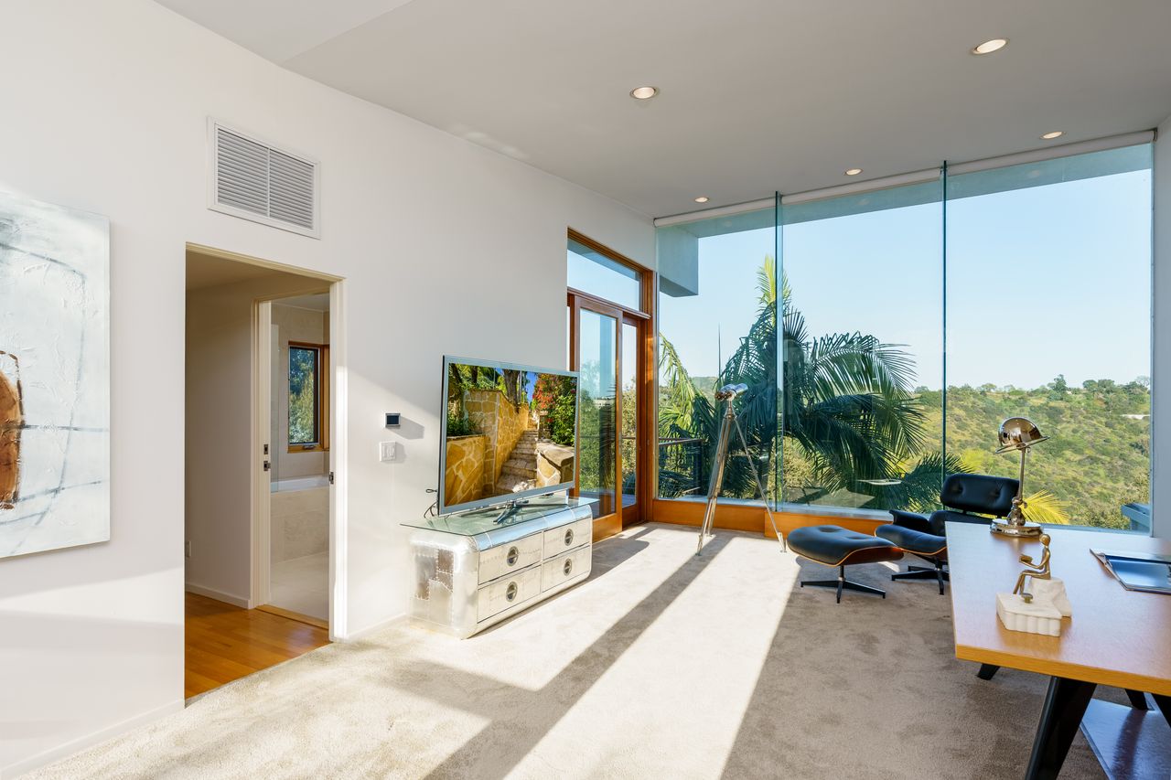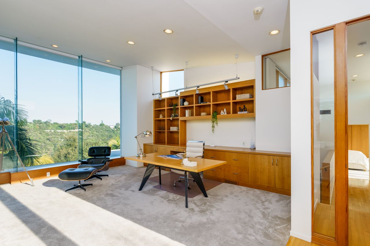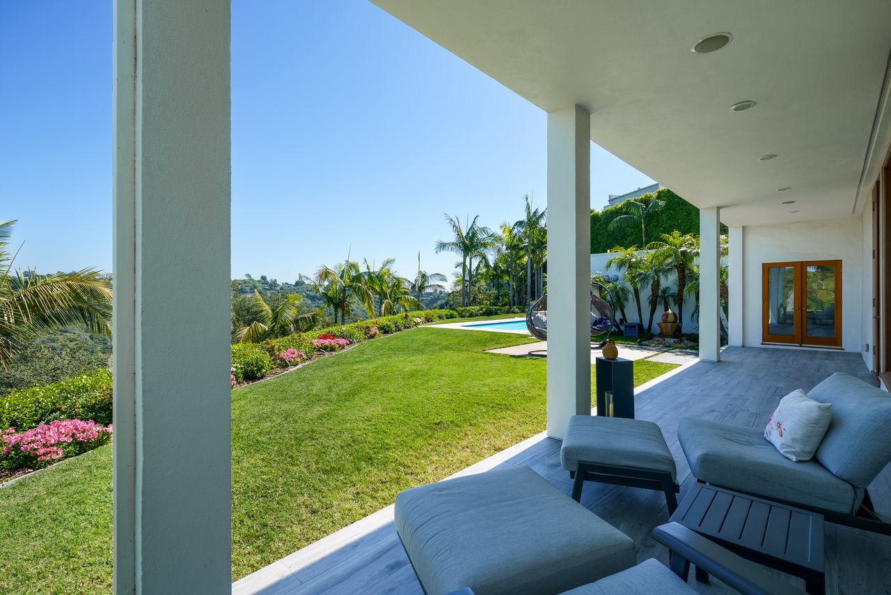 Not often does a home come to market that meets the demands of exceptional discerning buyers, this is the exception. Welcome to 1530 Bel Air Road, where Art meets Architecture. Designed and immaculately maintained with every minute detail thoughtfully considered and executed. Floating above the street, offering privacy and security with a completely gated property, this entertainer’s paradise has expansive views of the Bel Air canyons, all the way to the snowcapped mountains. The vibe of the entire home is designed to maximize the jaw dropping views of the Bel Air canyons and hills. This incredible home offers a retreat from the hustle and bustle of Los Angeles. There is an exquisite and beautifully manicured yard with colorful flowering gardens, magnificent trees, and a sparkling sunny swimmer’s pool and spa. This stunning two-story architectural oasis provides the best of all living opportunities. The living room, dining and Chef’s kitchen with center island offer a generous open living space unequaled in quality, comfort and sophistication. High ceilings, warm modern Douglas Fir windows & doors, real hardwood floors, a floating architectural wood, glass and steel staircase, a timeless stacked stone fireplace & brilliantly orchestrated walls of glass all blend together seamlessly to create an architectural masterpiece, where interior design and the stunning natural environment become one. The private primary suite is on the first floor and enjoys recessed lighting, an artisan crafted bluestone fireplace, plus both a private meditation patio and glass windows and doors opening to the one-of-a-kind view and garden. The primary bathroom includes a separate tub overlooking the gardens through a mitered corner window, double vanity, separate large shower and walk-in closet . There are two additional bedroom suites on the second floor. One of the bedrooms is currently designed as a luxury office with custom built-in cabinetry, an ample terrace and a truly dramatic 12′ wall of glass providing an unbelievable melding of indoor comfort and outdoor landscaped beauty. This exceptional work space makes working from home a pleasure you won’t want to leave. The additional bedroom suite features an entire wall of floor to ceiling glass framed in Douglas Fir, including a French door to the small terrace, and clearstory windows over the bed, allowing the sunshine to stream in at all times of the day. Descending to the private terraced wonderland at the rear of the property, one can co-habitat with peaceful lush landscaping, cascading entertainment spaces framed in beautiful masonry, quiet hidden hideaways for meditation or yoga, and even an olive grove rarely seen in Bel Air. The direct access two-car garage features an optic glass garage door, epoxy floors, EV charger, and loads of storage. An architectural gem on a legendary, historic street, this home embodies the tranquility of its magnificent setting and provides a feeling of being far from the city bustle, yet is just five minutes from Sunset Boulevard. The home exudes serenity and luxury while providing an exceptional living space for the most discerning. Welcome home to the home of your dreams!