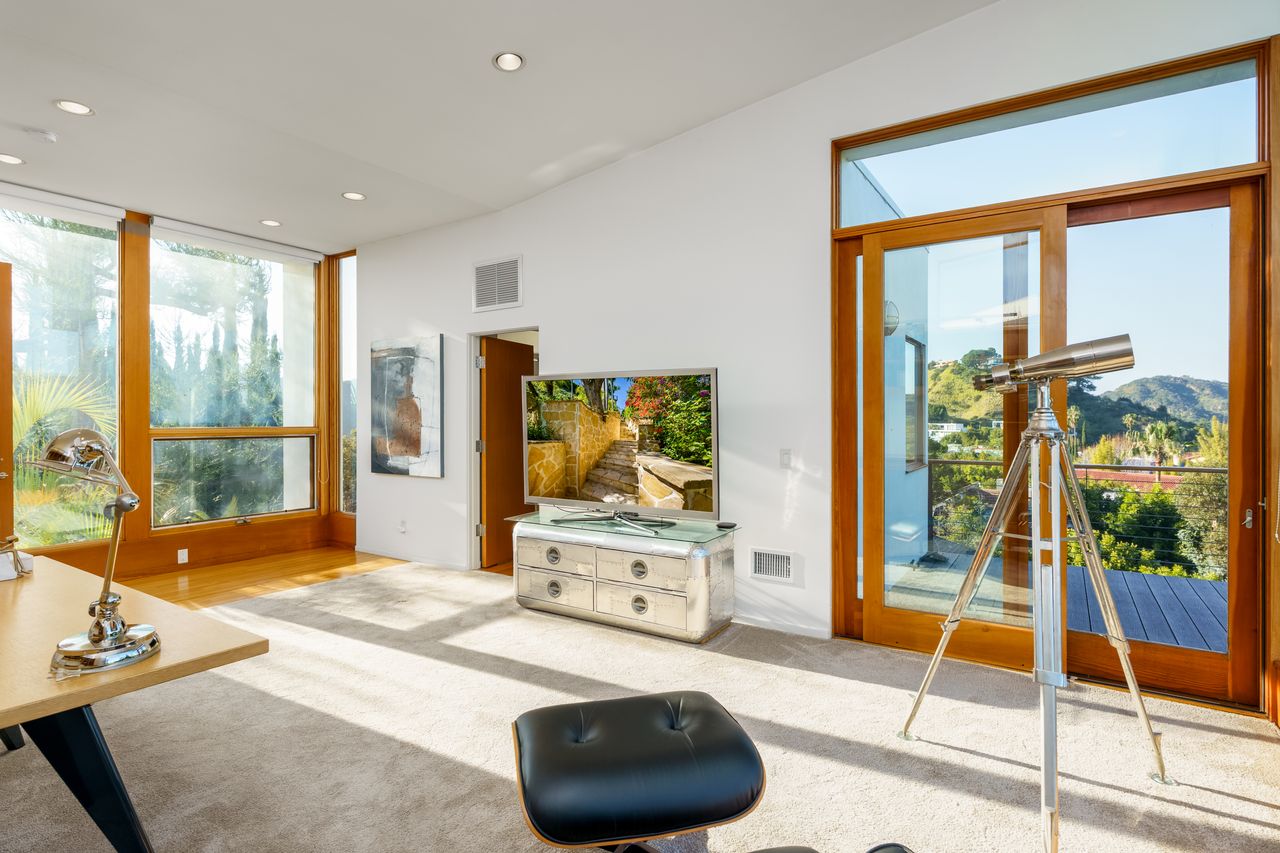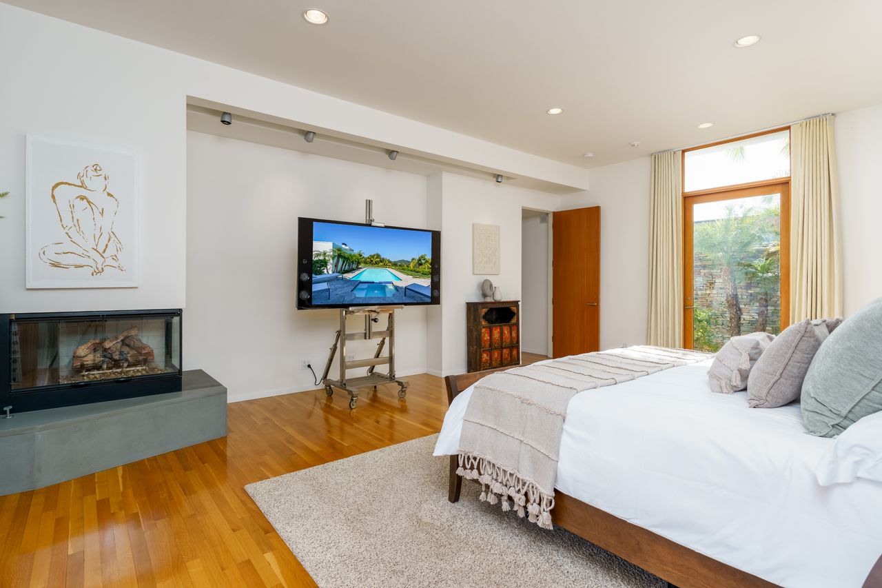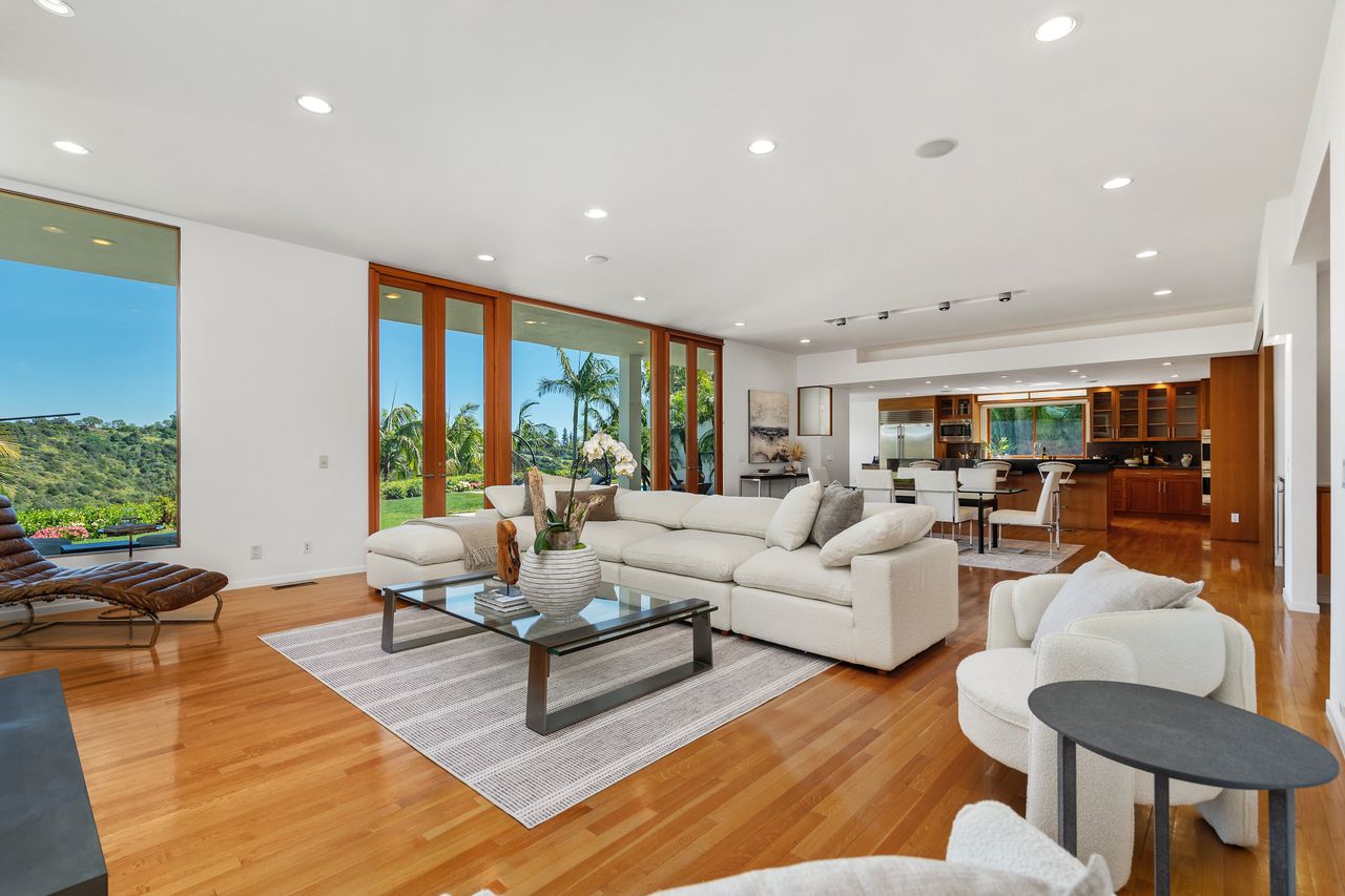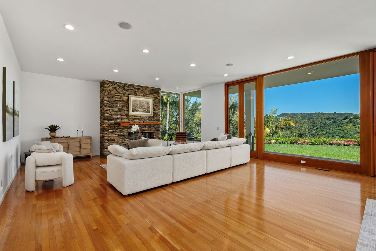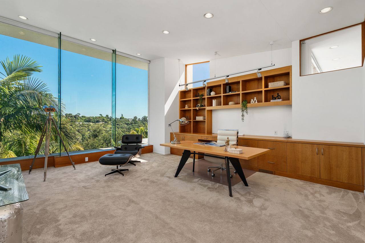 Not often does a home come to market that meets the demands of exceptional discerning buyers, this is the exception. Welcome to 1530 Bel Air Road, where Art meets Architecture. Designed and immaculately maintained with every minute detail thoughtfully considered and executed. Floating above the street, offering privacy and security with a completely gated property, this entertainer’s paradise has expansive views of the Bel Air canyons, all the way to the snowcapped mountains. The vibe of the entire home is designed to maximize the jaw dropping views of the Bel Air canyons and hills. This incredible home offers a retreat from the hustle and bustle of Los Angeles. There is an exquisite and beautifully manicured yard with colorful flowering gardens, magnificent trees, and a sparkling sunny swimmer’s pool and spa. This stunning two-story architectural oasis provides the best of all living opportunities. The living room, dining and Chef’s kitchen with center island offer a generous open living space unequaled in quality, comfort and sophistication. High ceilings, warm modern Douglas Fir windows & doors, real hardwood floors, a floating architectural wood, glass and steel staircase, a timeless stacked stone fireplace & brilliantly orchestrated walls of glass all blend together seamlessly to create an architectural masterpiece, where interior design and the stunning natural environment become one. The private primary suite is on the first floor and enjoys recessed lighting, an artisan crafted bluestone fireplace, plus both a private meditation patio and glass windows and doors opening to the one-of-a-kind view and garden. The primary bathroom includes a separate tub overlooking the gardens through a mitered corner window, double vanity, separate large shower and walk-in closet . There are two additional bedroom suites on the second floor. One of the bedrooms is currently designed as a luxury office with custom built-in cabinetry, an ample terrace and a truly dramatic 12′ wall of glass providing an unbelievable melding of indoor comfort and outdoor landscaped beauty. This exceptional work space makes working from home a pleasure you won’t want to leave. The additional bedroom suite features an entire wall of floor to ceiling glass framed in Douglas Fir, including a French door to the small terrace, and clearstory windows over the bed, allowing the sunshine to stream in at all times of the day. Descending to the private terraced wonderland at the rear of the property, one can co-habitat with peaceful lush landscaping, cascading entertainment spaces framed in beautiful masonry, quiet hidden hideaways for meditation or yoga, and even an olive grove rarely seen in Bel Air. The direct access two-car garage features an optic glass garage door, epoxy floors, EV charger, and loads of storage. An architectural gem on a legendary, historic street, this home embodies the tranquility of its magnificent setting and provides a feeling of being far from the city bustle, yet is just five minutes from Sunset Boulevard. The home exudes serenity and luxury while providing an exceptional living space for the most discerning. Welcome home to the home of your dreams!