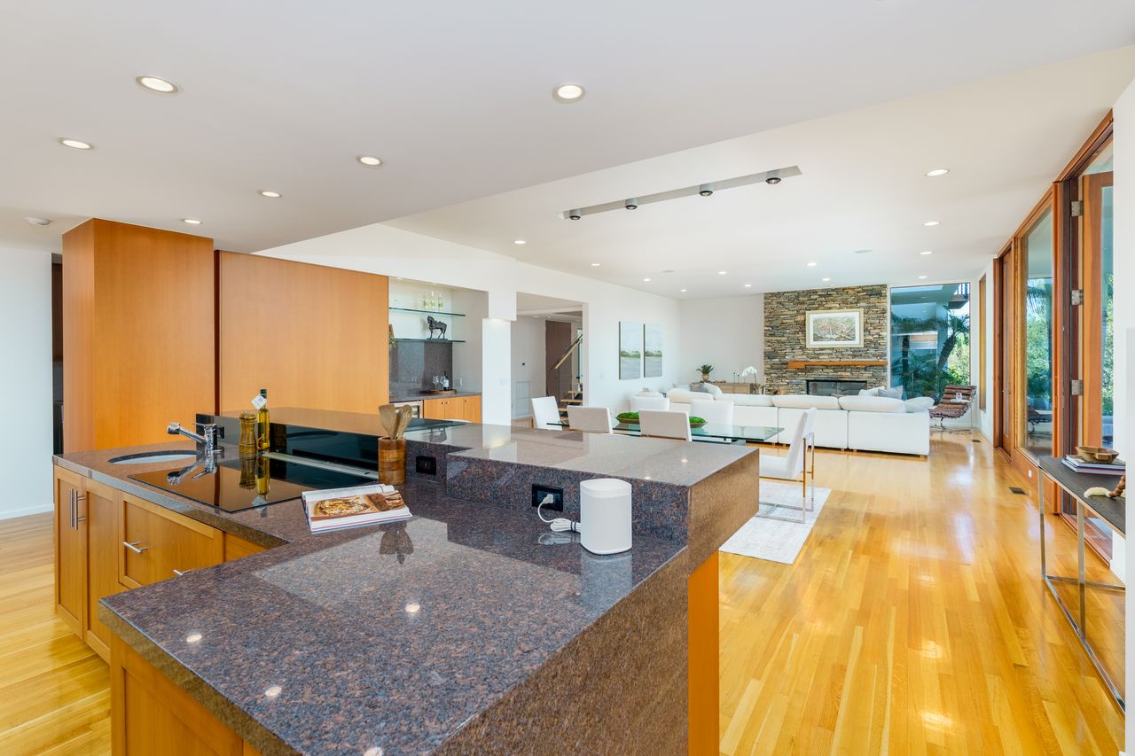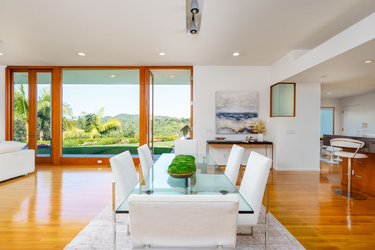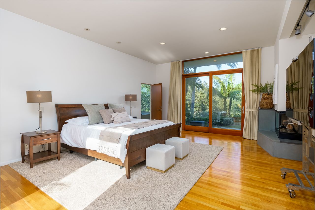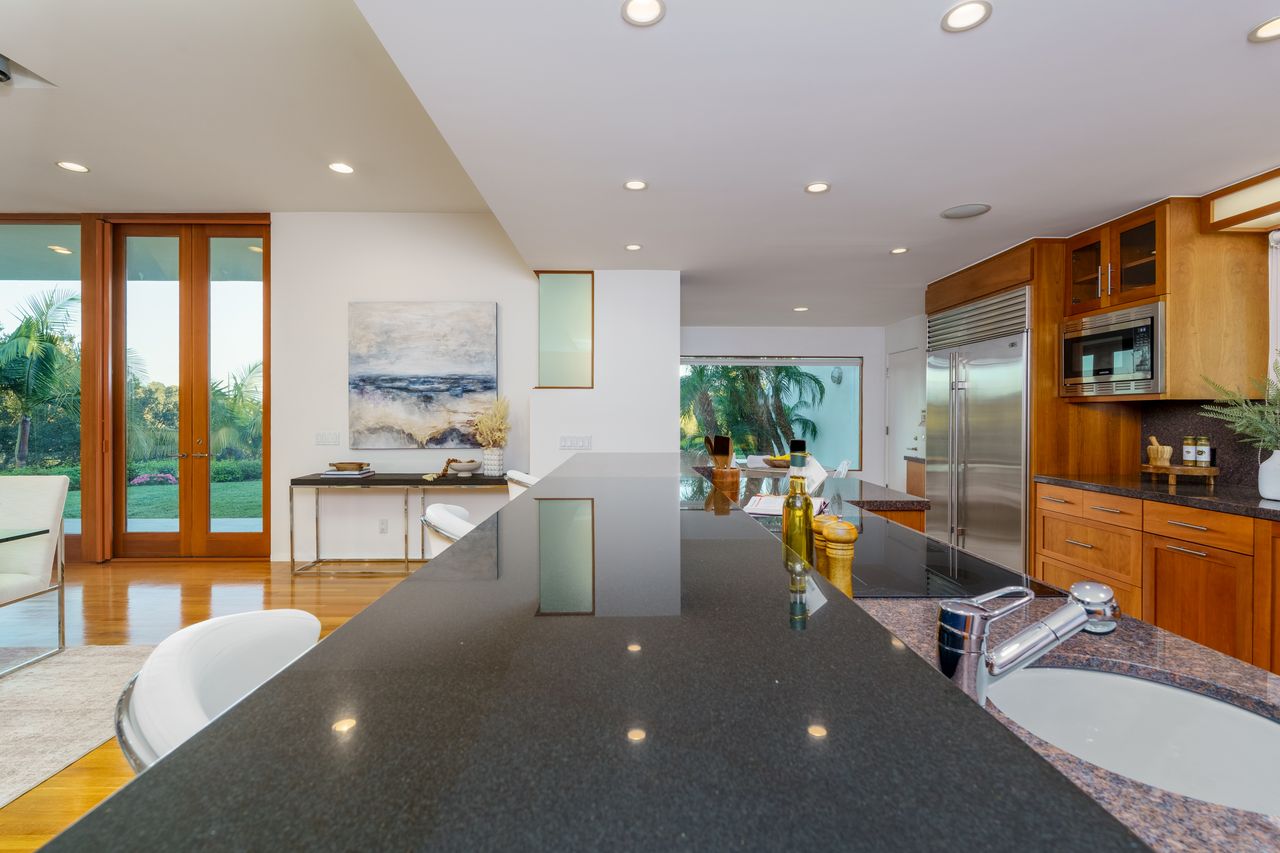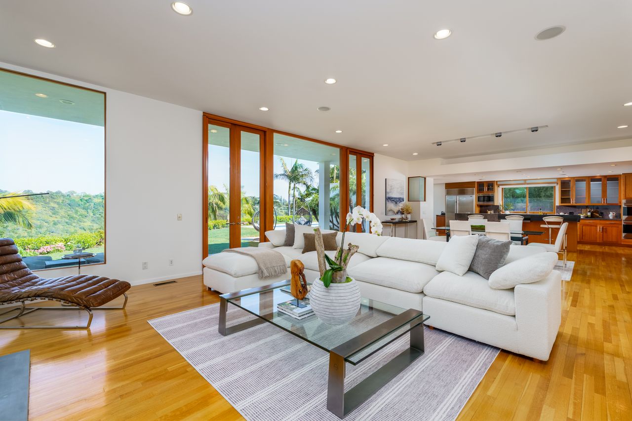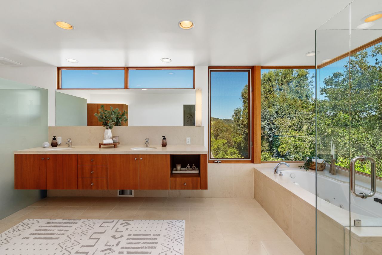 Not often does a home come to market that meets the demands of exceptional discerning buyers, this is the exception. Welcome to 1530 Bel Air Road, where Art meets Architecture. Designed and immaculately maintained with every minute detail thoughtfully considered and executed. Floating above the street, offering privacy and security with a completely gated property, this entertainer’s paradise has expansive views of the Bel Air canyons, all the way to the snowcapped mountains. The vibe of the entire home is designed to maximize the jaw dropping views of the Bel Air canyons and hills. This incredible home offers a retreat from the hustle and bustle of Los Angeles. There is an exquisite and beautifully manicured yard with colorful flowering gardens, magnificent trees, and a sparkling sunny swimmer’s pool and spa. This stunning two-story architectural oasis provides the best of all living opportunities. The living room, dining and Chef’s kitchen with center island offer a generous open living space unequaled in quality, comfort and sophistication. High ceilings, warm modern Douglas Fir windows & doors, real hardwood floors, a floating architectural wood, glass and steel staircase, a timeless stacked stone fireplace & brilliantly orchestrated walls of glass all blend together seamlessly to create an architectural masterpiece, where interior design and the stunning natural environment become one. The private primary suite is on the first floor and enjoys recessed lighting, an artisan crafted bluestone fireplace, plus both a private meditation patio and glass windows and doors opening to the one-of-a-kind view and garden. The primary bathroom includes a separate tub overlooking the gardens through a mitered corner window, double vanity, separate large shower and walk-in closet . There are two additional bedroom suites on the second floor. One of the bedrooms is currently designed as a luxury office with custom built-in cabinetry, an ample terrace and a truly dramatic 12′ wall of glass providing an unbelievable melding of indoor comfort and outdoor landscaped beauty. This exceptional work space makes working from home a pleasure you won’t want to leave. The additional bedroom suite features an entire wall of floor to ceiling glass framed in Douglas Fir, including a French door to the small terrace, and clearstory windows over the bed, allowing the sunshine to stream in at all times of the day. Descending to the private terraced wonderland at the rear of the property, one can co-habitat with peaceful lush landscaping, cascading entertainment spaces framed in beautiful masonry, quiet hidden hideaways for meditation or yoga, and even an olive grove rarely seen in Bel Air. The direct access two-car garage features an optic glass garage door, epoxy floors, EV charger, and loads of storage. An architectural gem on a legendary, historic street, this home embodies the tranquility of its magnificent setting and provides a feeling of being far from the city bustle, yet is just five minutes from Sunset Boulevard. The home exudes serenity and luxury while providing an exceptional living space for the most discerning. Welcome home to the home of your dreams!