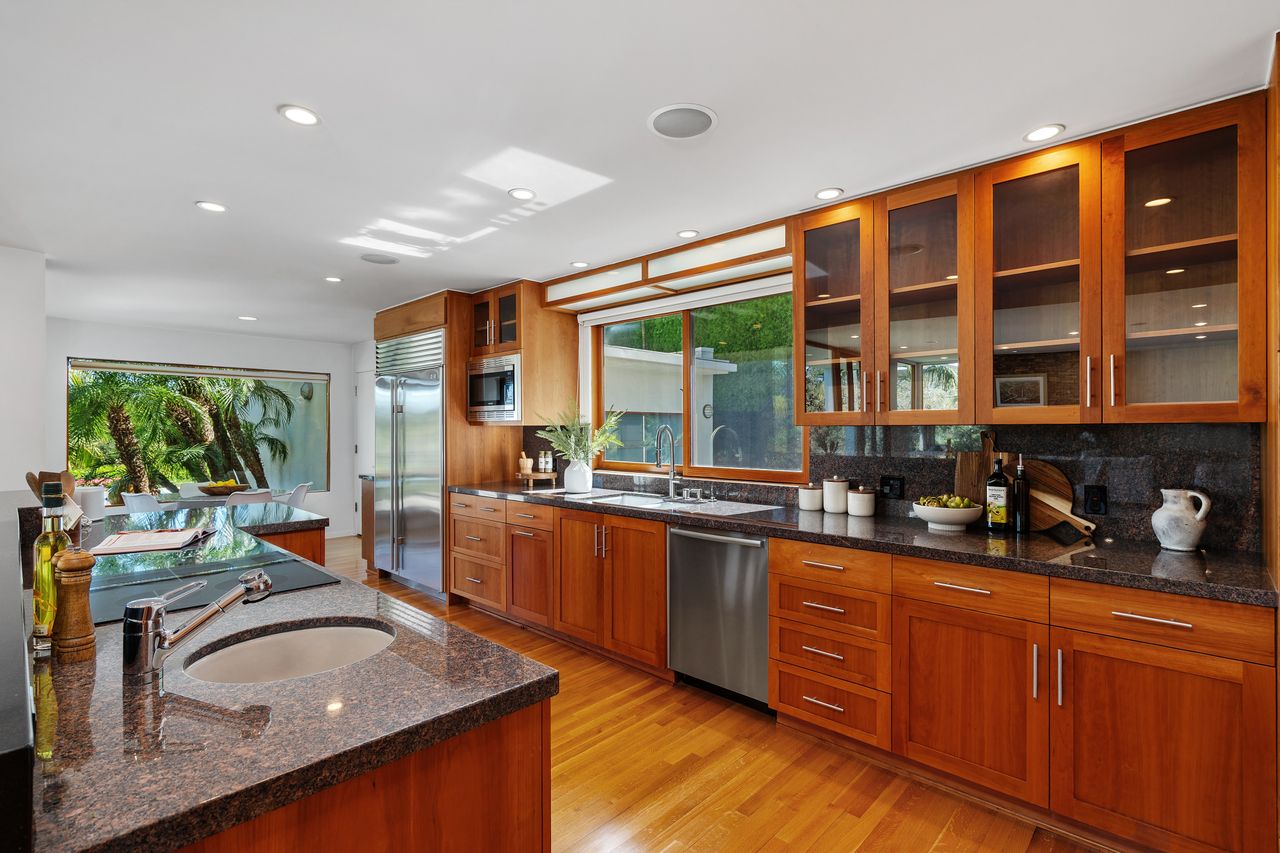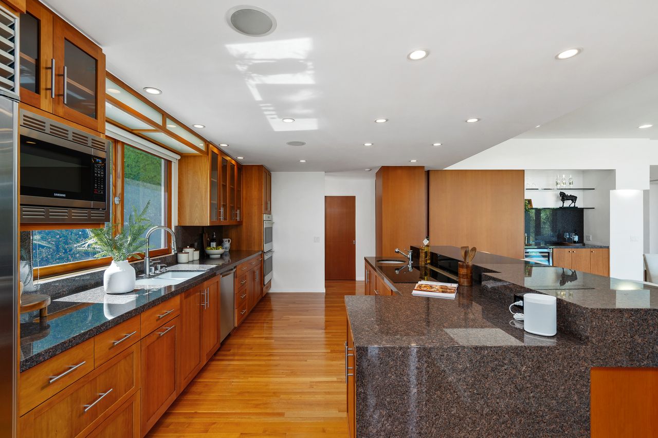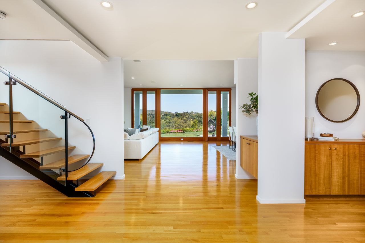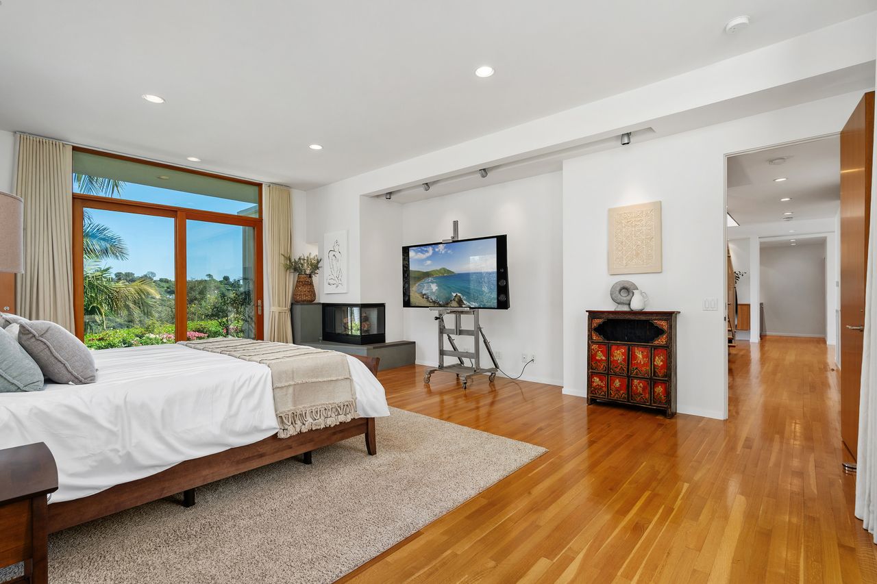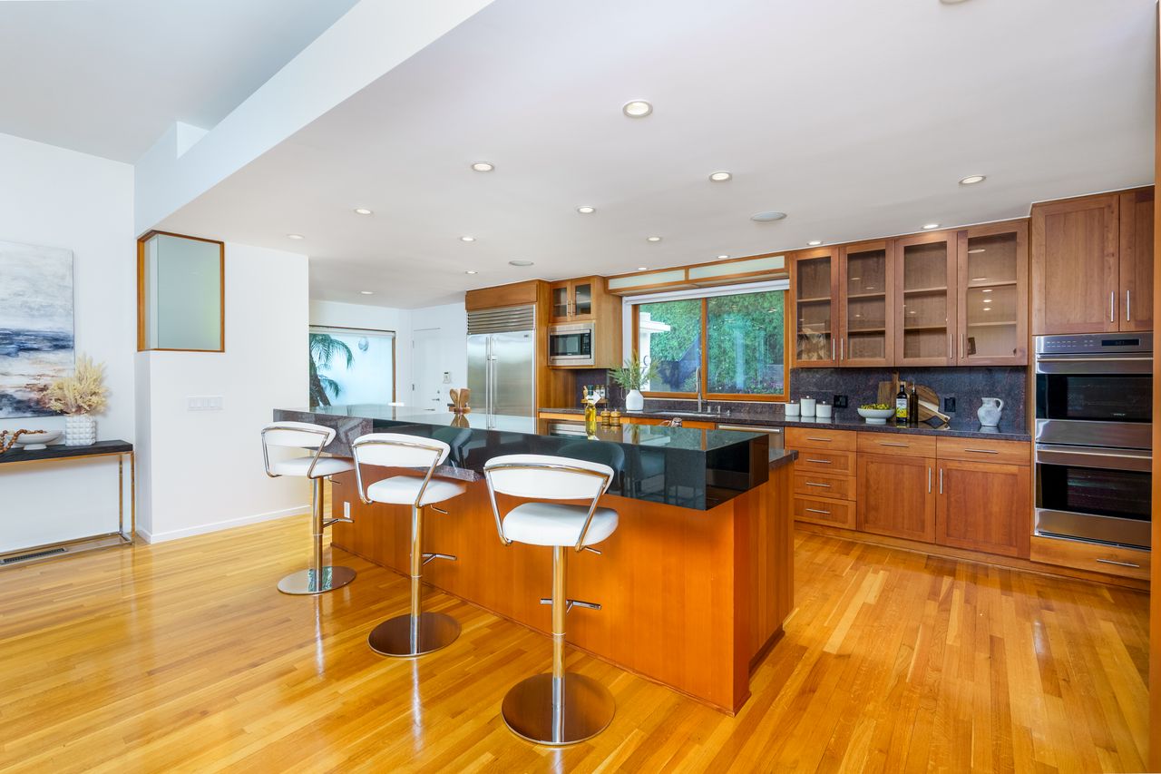 Not often does a home come to market that meets the demands of exceptional discerning buyers, this is the exception. Welcome to 1530 Bel Air Road, where Art meets Architecture. Designed and immaculately maintained with every minute detail thoughtfully considered and executed. Floating above the street, offering privacy and security with a completely gated property, this entertainer’s paradise has expansive views of the Bel Air canyons, all the way to the snowcapped mountains. The vibe of the entire home is designed to maximize the jaw dropping views of the Bel Air canyons and hills. This incredible home offers a retreat from the hustle and bustle of Los Angeles. There is an exquisite and beautifully manicured yard with colorful flowering gardens, magnificent trees, and a sparkling sunny swimmer’s pool and spa. This stunning two-story architectural oasis provides the best of all living opportunities. The living room, dining and Chef’s kitchen with center island offer a generous open living space unequaled in quality, comfort and sophistication. High ceilings, warm modern Douglas Fir windows & doors, real hardwood floors, a floating architectural wood, glass and steel staircase, a timeless stacked stone fireplace & brilliantly orchestrated walls of glass all blend together seamlessly to create an architectural masterpiece, where interior design and the stunning natural environment become one. The private primary suite is on the first floor and enjoys recessed lighting, an artisan crafted bluestone fireplace, plus both a private meditation patio and glass windows and doors opening to the one-of-a-kind view and garden. The primary bathroom includes a separate tub overlooking the gardens through a mitered corner window, double vanity, separate large shower and walk-in closet . There are two additional bedroom suites on the second floor. One of the bedrooms is currently designed as a luxury office with custom built-in cabinetry, an ample terrace and a truly dramatic 12′ wall of glass providing an unbelievable melding of indoor comfort and outdoor landscaped beauty. This exceptional work space makes working from home a pleasure you won’t want to leave. The additional bedroom suite features an entire wall of floor to ceiling glass framed in Douglas Fir, including a French door to the small terrace, and clearstory windows over the bed, allowing the sunshine to stream in at all times of the day. Descending to the private terraced wonderland at the rear of the property, one can co-habitat with peaceful lush landscaping, cascading entertainment spaces framed in beautiful masonry, quiet hidden hideaways for meditation or yoga, and even an olive grove rarely seen in Bel Air. The direct access two-car garage features an optic glass garage door, epoxy floors, EV charger, and loads of storage. An architectural gem on a legendary, historic street, this home embodies the tranquility of its magnificent setting and provides a feeling of being far from the city bustle, yet is just five minutes from Sunset Boulevard. The home exudes serenity and luxury while providing an exceptional living space for the most discerning. Welcome home to the home of your dreams!