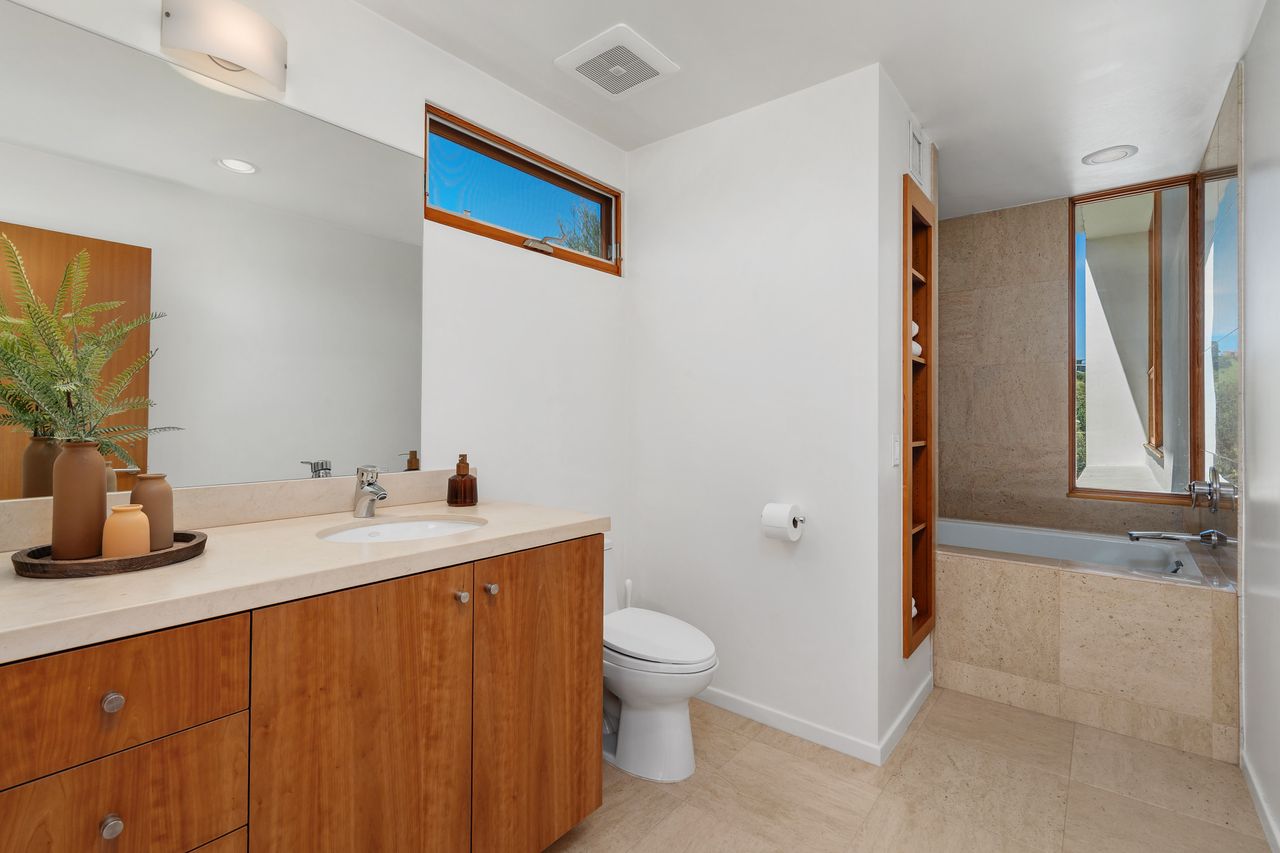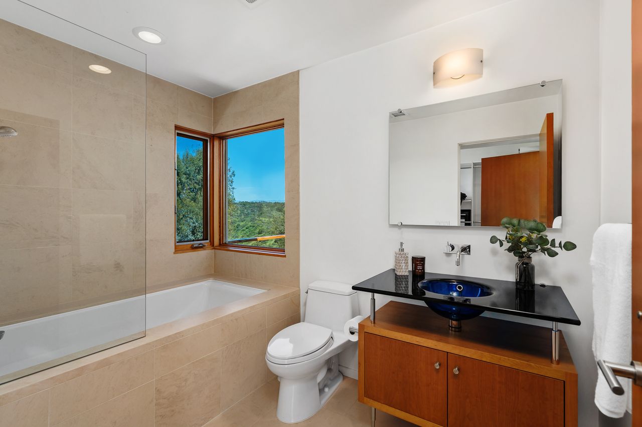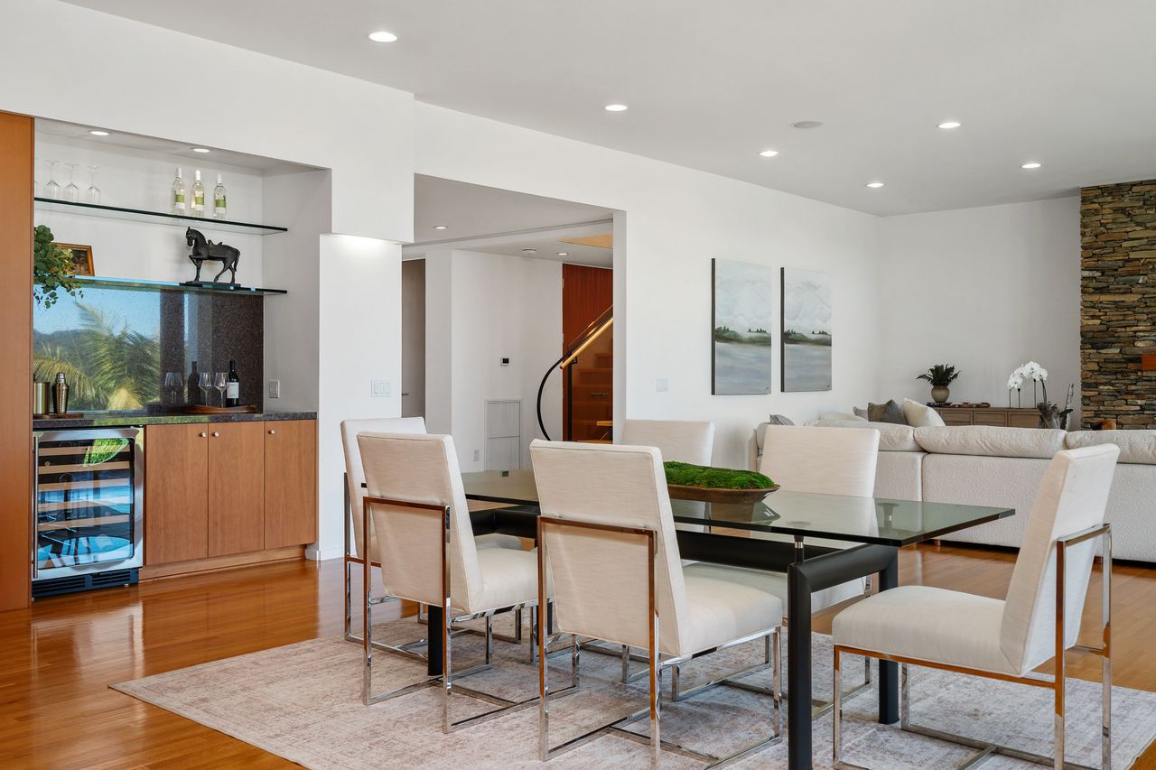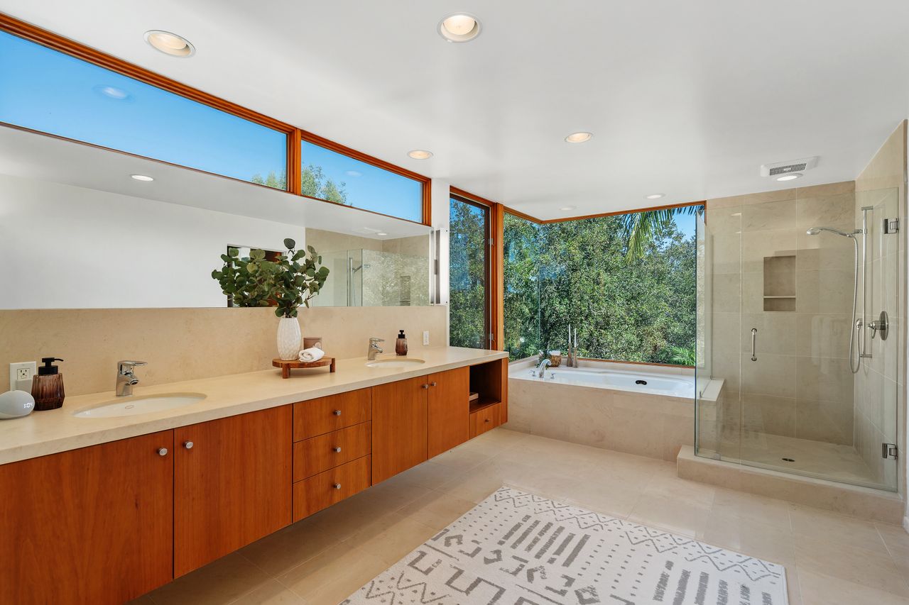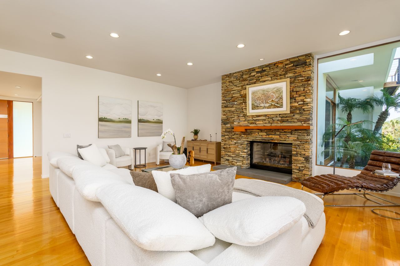 Not often does a home come to market that meets the demands of exceptional discerning buyers, this is the exception. Welcome to 1530 Bel Air Road, where Art meets Architecture. Designed and immaculately maintained with every minute detail thoughtfully considered and executed. Floating above the street, offering privacy and security with a completely gated property, this entertainer’s paradise has expansive views of the Bel Air canyons, all the way to the snowcapped mountains. The vibe of the entire home is designed to maximize the jaw dropping views of the Bel Air canyons and hills. This incredible home offers a retreat from the hustle and bustle of Los Angeles. There is an exquisite and beautifully manicured yard with colorful flowering gardens, magnificent trees, and a sparkling sunny swimmer’s pool and spa. This stunning two-story architectural oasis provides the best of all living opportunities. The living room, dining and Chef’s kitchen with center island offer a generous open living space unequaled in quality, comfort and sophistication. High ceilings, warm modern Douglas Fir windows & doors, real hardwood floors, a floating architectural wood, glass and steel staircase, a timeless stacked stone fireplace & brilliantly orchestrated walls of glass all blend together seamlessly to create an architectural masterpiece, where interior design and the stunning natural environment become one. The private primary suite is on the first floor and enjoys recessed lighting, an artisan crafted bluestone fireplace, plus both a private meditation patio and glass windows and doors opening to the one-of-a-kind view and garden. The primary bathroom includes a separate tub overlooking the gardens through a mitered corner window, double vanity, separate large shower and walk-in closet . There are two additional bedroom suites on the second floor. One of the bedrooms is currently designed as a luxury office with custom built-in cabinetry, an ample terrace and a truly dramatic 12′ wall of glass providing an unbelievable melding of indoor comfort and outdoor landscaped beauty. This exceptional work space makes working from home a pleasure you won’t want to leave. The additional bedroom suite features an entire wall of floor to ceiling glass framed in Douglas Fir, including a French door to the small terrace, and clearstory windows over the bed, allowing the sunshine to stream in at all times of the day. Descending to the private terraced wonderland at the rear of the property, one can co-habitat with peaceful lush landscaping, cascading entertainment spaces framed in beautiful masonry, quiet hidden hideaways for meditation or yoga, and even an olive grove rarely seen in Bel Air. The direct access two-car garage features an optic glass garage door, epoxy floors, EV charger, and loads of storage. An architectural gem on a legendary, historic street, this home embodies the tranquility of its magnificent setting and provides a feeling of being far from the city bustle, yet is just five minutes from Sunset Boulevard. The home exudes serenity and luxury while providing an exceptional living space for the most discerning. Welcome home to the home of your dreams!